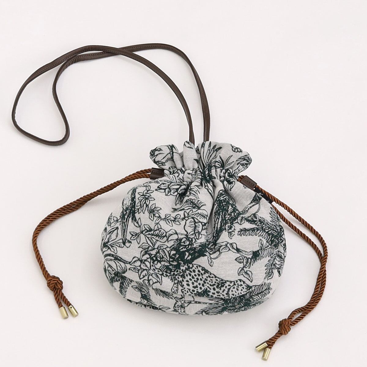 2023新作【Nananoel】bonnieサファリ柄生地巾着ショルダーバッグ 斜めがけ